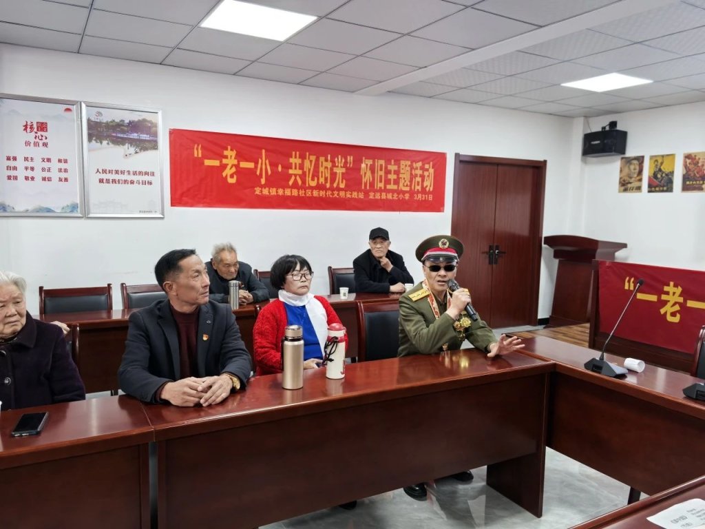 ~ 3月31日,定远县城北小学的部分少先队员们走进幸福路社区,开展了一场别开生面的“一老一小共忆旧时光”活动。此次活动旨在通过革命老英雄讲述红色故事、小学生集体诵读和唱红歌等形式,让孩子们在与老英雄的互动中,传承家风故事,赓续红色基精神,感受历史的厚重与伟大,同时也为社区增添了一份温暖与活力。