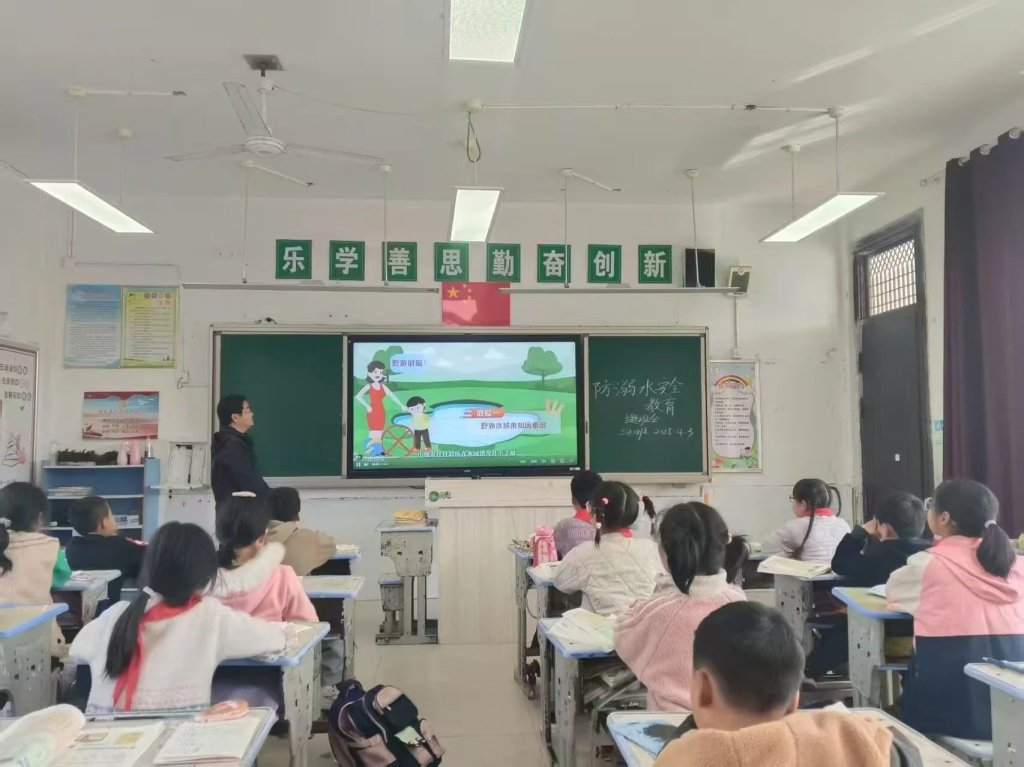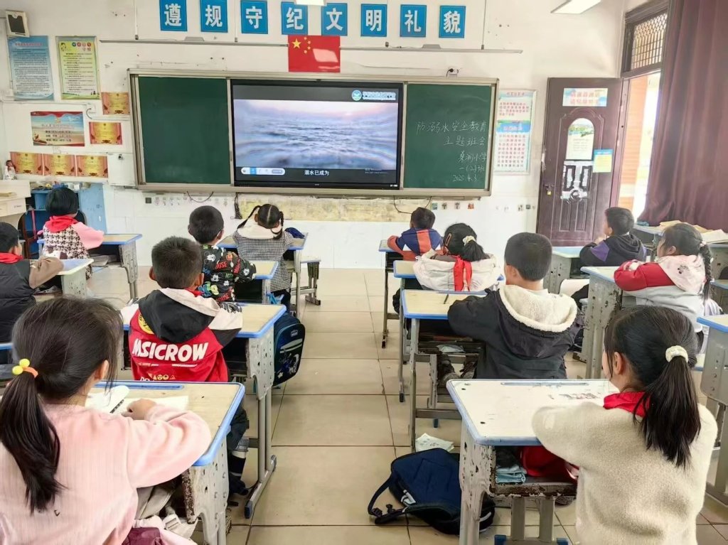 ~ 当天下午,全校18个班级统一召开主题班会,集中观看《防溺水警示教育片》。片中真实案例与自救演示相结合,强化学生”六不两会”安全准则,直观展现野外戏水风险。