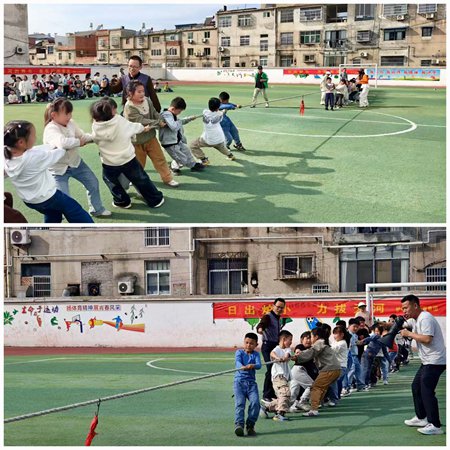 ~ 2025 年 4 月 15 日,定远县炉桥一小西校区在课后服务中开展了一场精彩的拔河比赛。此次比赛作为学校体育特色课程的一部分,以“竞技+实践+教育”模式开展,旨在培养学生的团队协作能力、规则意识与运动兴趣,同时丰富课后服务活动内容。