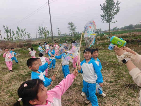~ 春天如约而至,每一棵花草都带着鲜活灵动的美好。伴随着暖暖的阳光,孩子们小手拉小手,一起快乐出发啦!绿色盎然充满生机,隐藏着春日的奥秘。孩子们用眼睛欣赏,用耳朵聆听,用鼻子嗅闻,用心灵感受,捕捉春的气息。 每个小朋友都是天生的艺术家,蕴含着巨大的想象力,孩子们用自己的画笔和小手记录春天的生机,春天的希望,在风车上画出属于自己的童年。