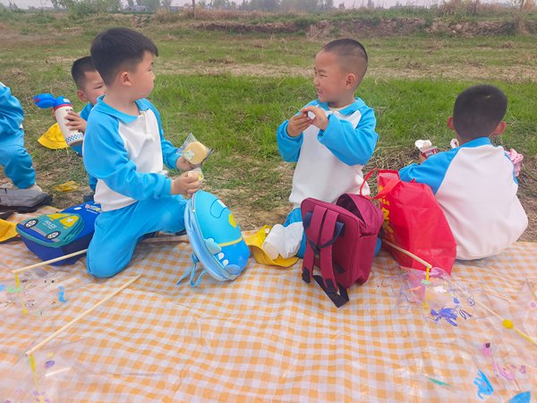 ~ 期待已久的美食分享时刻来了,铺上野餐垫,小朋友们围坐在一起,大家纷纷拿出自己书包中的食物。在春日下享受美食,学会分享,尽情体验着集体生活的乐趣。