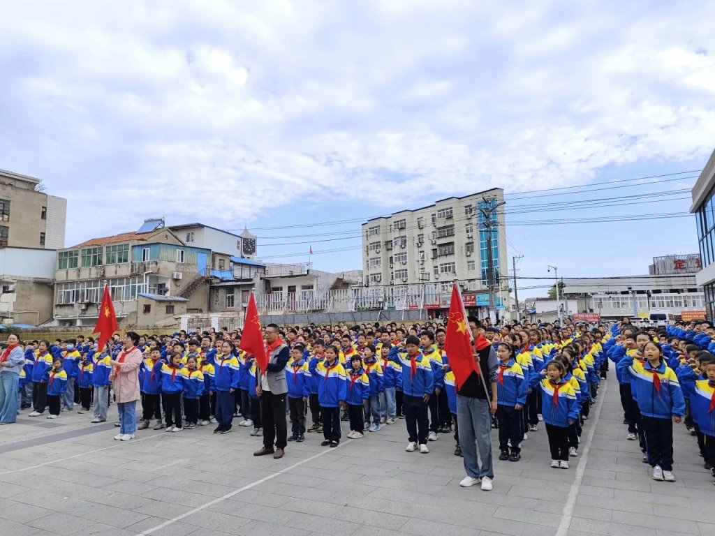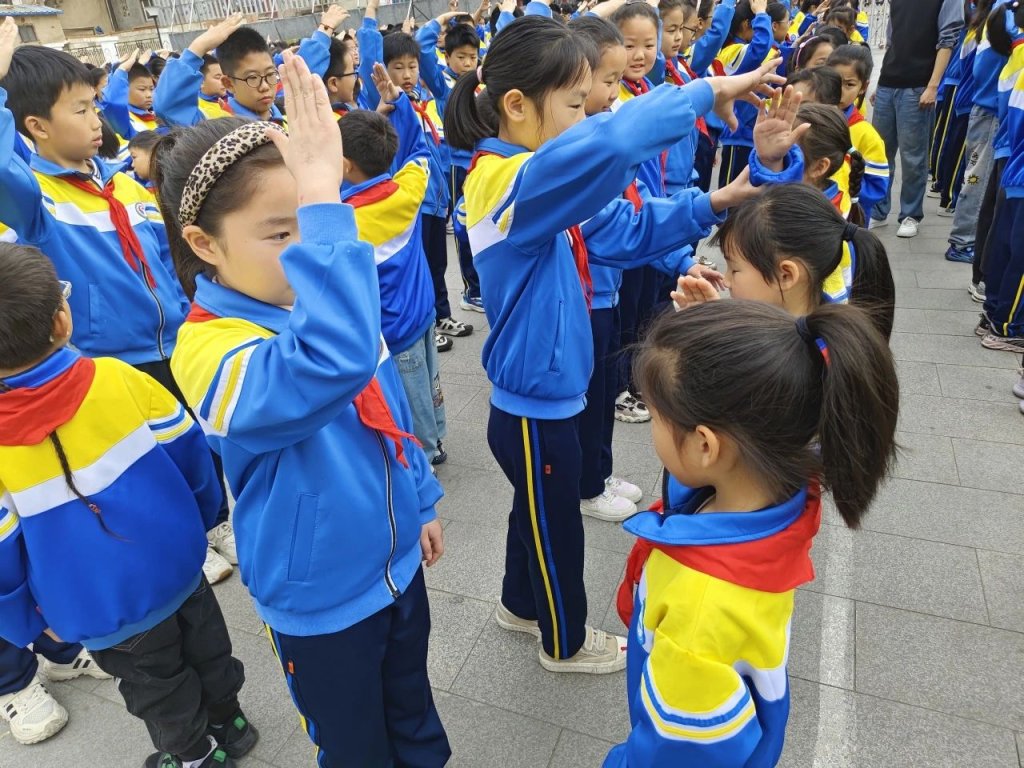~ 在少先队大队长的带领下,新队员们右手握拳,庄严宣誓,誓言铮铮,响彻广场,表达着他们为共产主义事业贡献力量的坚定决心。