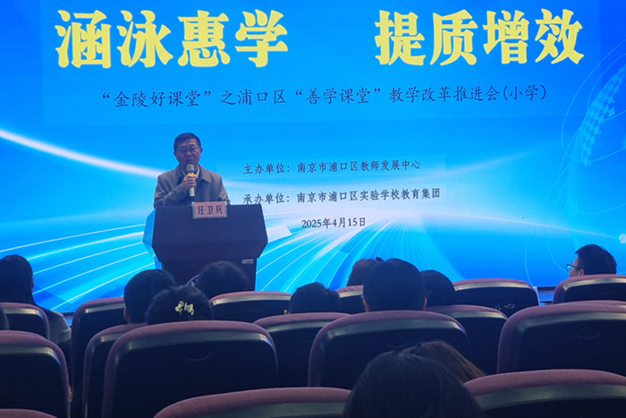 ~ 特色汇报,彰显课改教育成果。该校的主题汇报活动环节和内容创意十足,给与会者带来了深刻的启发。其中,两场别开生面的情景剧,宛如一扇窗口,清晰地展现出该校数学与英语教研组独特的教研日常。数学教研组的情景剧围绕 “小组合作合而不作怎么办” 这一极具现实意义的微话题展开。舞台之上,一位数学老师率先抛出在小组合作学习中,部分学生参与度不高、“合而不作” 的现象,瞬间点燃了讨论的热情。接着老师们化身为学生,模拟了小组合作中的真实情境, 通过几次身份转换生动地演绎出数学教研团队面对教学难题时的积极探索精神。而英语教研组的情景剧则紧扣 “新教材、新起点” 的话题。场景切换至英语备课室,桌上堆满了崭新的英语教材。老师们围绕新教材的特点与变化,展开热烈探讨。他们通过模拟课堂上与学生的互动,展示对新教材教学方法的尝试与调整。这两场情景剧,不仅直观呈现了浦口实验学校数学和英语教研组日常教研的真实状态,更将该校所秉持的 “涵泳优游” 学习方式展现得淋漓尽致。在这样深入、细致的教研过程中,老师们积极探索,不断实践,既能深入知识内核,又能自在遨游其中的学习环境,让 “涵泳优游” 的理念真正落地生根,令现场观摩的老师们深受触动,收获颇丰。