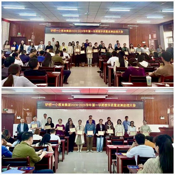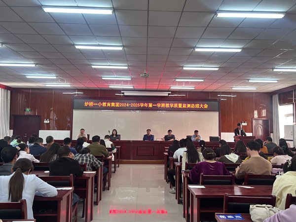 ~ 2025 年 4 月 16 日,定远县炉桥一小教育集团召开2024—2025学年第一学期教学质量监测总结大会,全体教师共同参与。