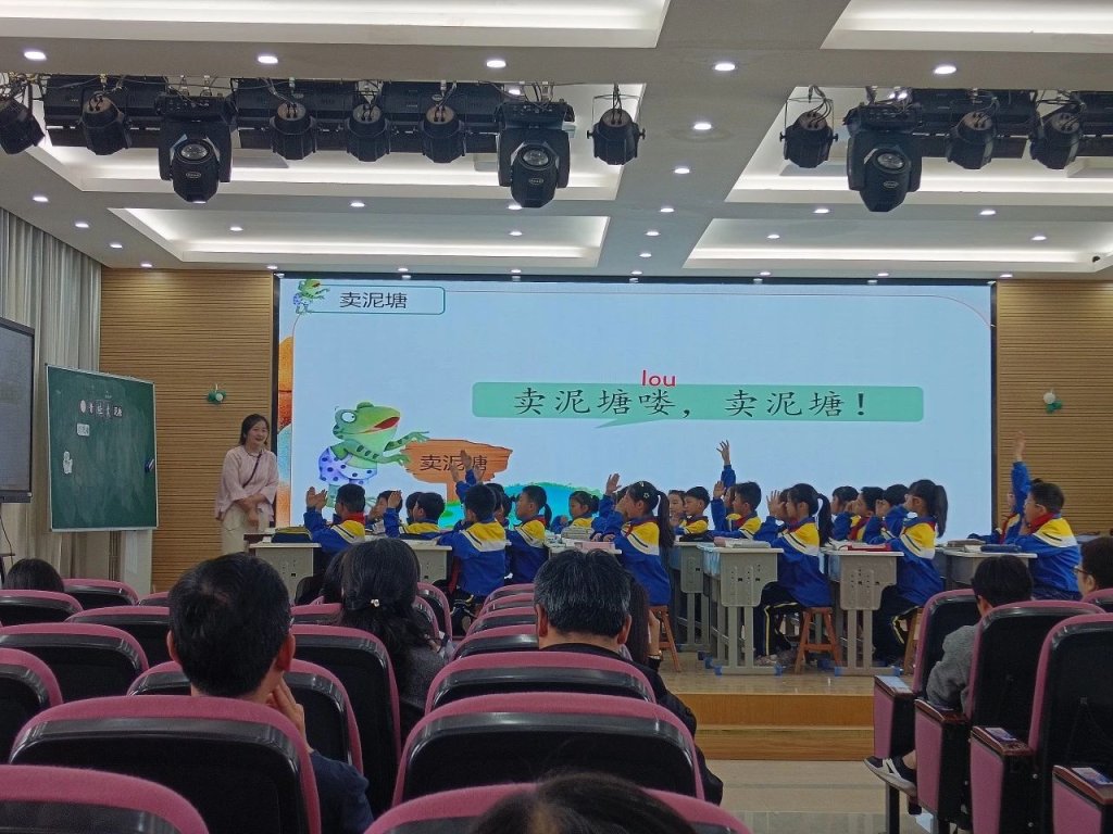 ~ 二年级曹辰老师执教的《青蛙卖泥塘》同样精彩。课堂伊始,曹老师以经典动画《小蝌蚪找妈妈》导入,巧妙引出“青蛙卖泥塘”的课题,顺势聚焦“蛙”“卖”两个生字。课程围绕两大教学目标展开,曹老师将识字写字与文本理解有机融合,通过“读、写、评”结合的方式,既夯实基础,又为后续深度学习做好铺垫。在教学过程中,曹老师引导学生正确、流利朗读课文,通过生动的讲解和互动,帮助学生清晰了解青蛙改造泥塘的过程,培养了学生的阅读理解能力和想象力。