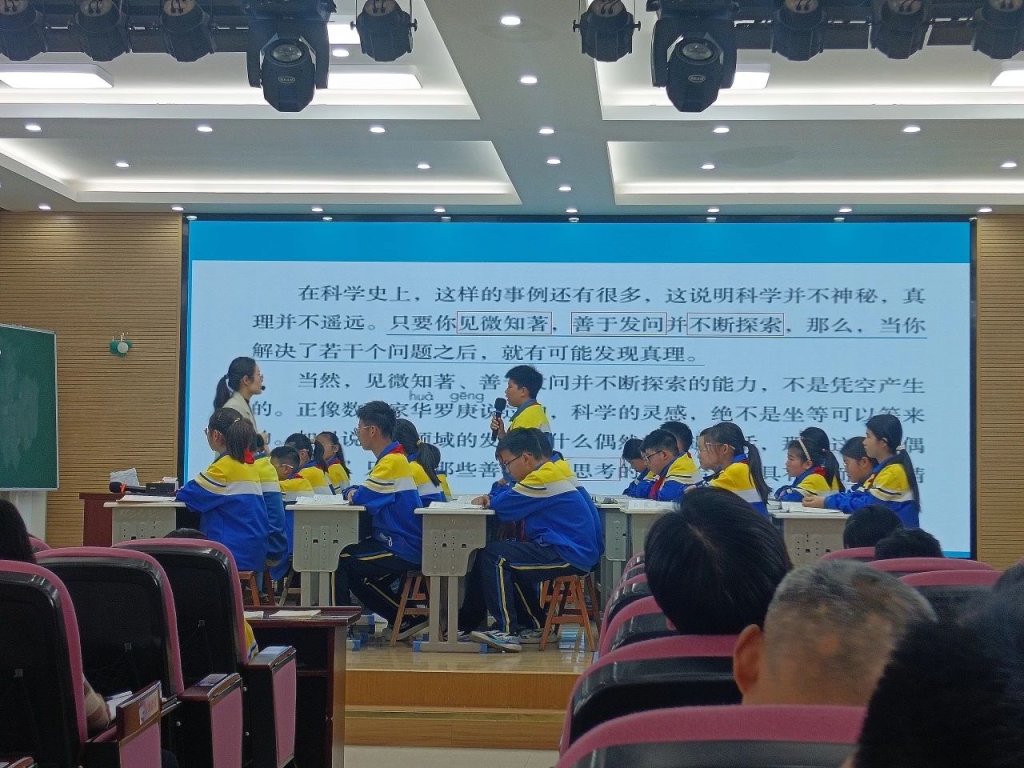 ~ 六年级苗敏老师执教的《真理诞生于一百个问号之后》以”科学精神”为主线,构建高效学习场域。苗老师紧扣教学目标,以清晰的教学思路引导学生自主学习字词,通过文本解读让学生深刻理解“司空见惯、敏锐、见微知著、锲而不舍”等词语的含义。在课文学习环节,苗老师引导学生默读课文,从具体事例中领悟“真理诞生于一百个问号之后”的深刻内涵,并鼓励学生讲述自己受到的启发。拓展层推荐阅读《叶永烈讲述科学家故事100个》,充分体现个性化作业设计的梯度性。
