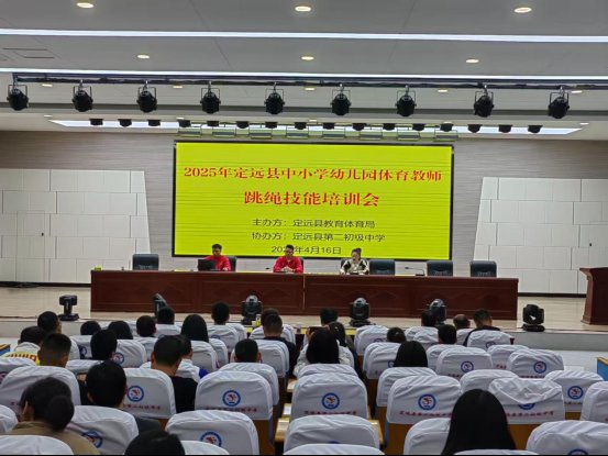 ~ 阳春三月,莺飞草长,为贯彻落实体教融合政策,提升我县中小学幼儿园体育教师跳绳技能水平,促进青少年身心健康发展,4月16日,由定远县教体局主办的“2025年定远县中小学体育教师跳绳技能培训”在第二初级中学报告厅成功举办。