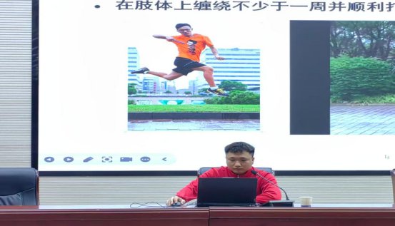 ~ 此次培训邀请了中国跳绳高级教练员许强、谢长山两位专业人士担任讲师。培训内容涵盖理论教学与实践训练两大板块。首先,许教练进行了个人速度类理论培训、段位制花样等级2段动作讲解和集体跳绳速度方法技巧的培训,让体育教师学会了速度跳绳的基础技术与训练方法。