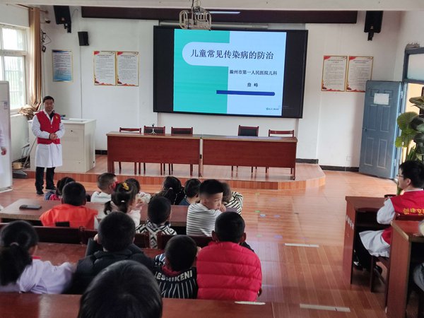 ~ 为进一步增强学生健康防护意识,普及传染病防治知识,提升校园应急救护能力,4月22日,滁州市第一人民医院医护团队走进定远县界牌学校,开展儿童常见传染病防治讲座及急救培训活动。活动现场气氛热烈,互动频频,师生收获满满。