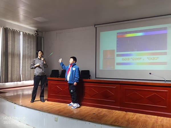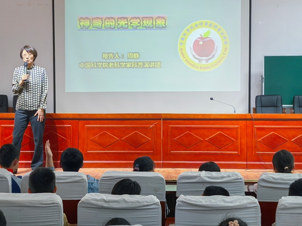 ~ 2025年4月24日,中国科学院资深科学家、北京师范大学博士生导师周静教授莅临定远县张桥小学,为学校师生呈现了一场题为《神奇的光学现象》的精彩科普讲座。此次中科院老科学家科普巡讲活动受到了学校的高度重视,特别组织了三至五年级的350余名师生参与其中。