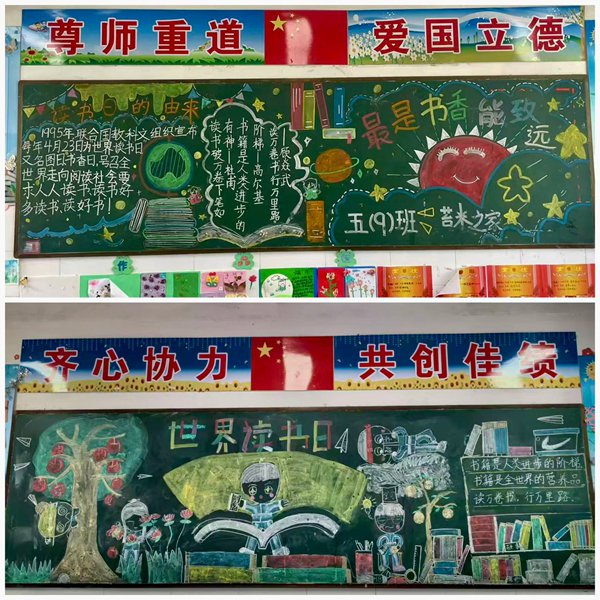 ~ 活动中,各班学生积极参与,围绕“世界读书日”主题精心创作。他们广泛收集资料,充分发挥想象力和创造力,用精美的图画、鲜艳的色彩和工整的文字,设计出一幅幅内容丰富、图文并茂的黑板报。