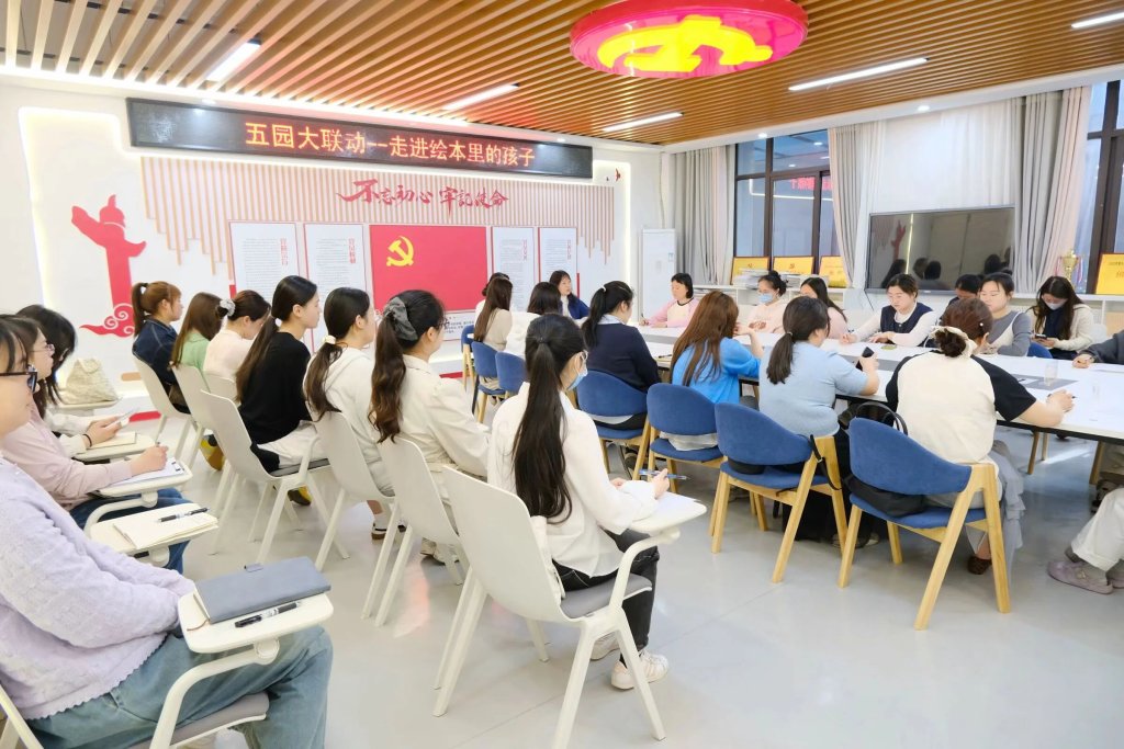 ~ 为深入探究绘本与体育活动的有机融合,提升教师课程设计与实施能力,4月24日,定远县示范幼儿园现代园携手四所分园开展”绘本体育教学”专题联动教研活动。本次活动以”理论引领+课例观摩+互动研讨”的形式展开,来自五所幼儿园的30余名教师共赴这场春日教研之约。