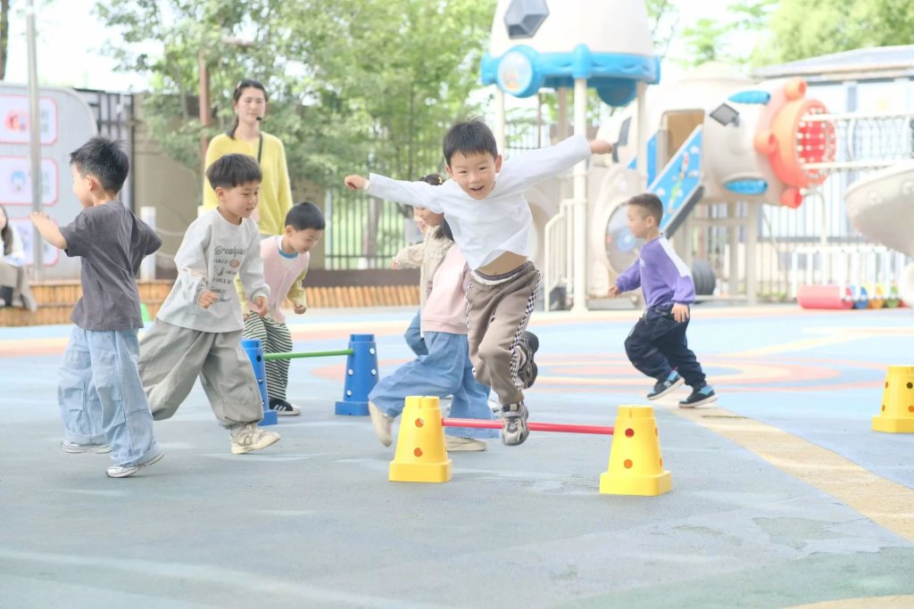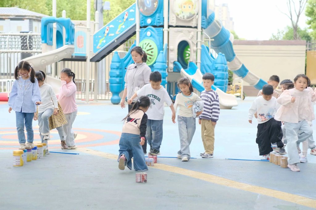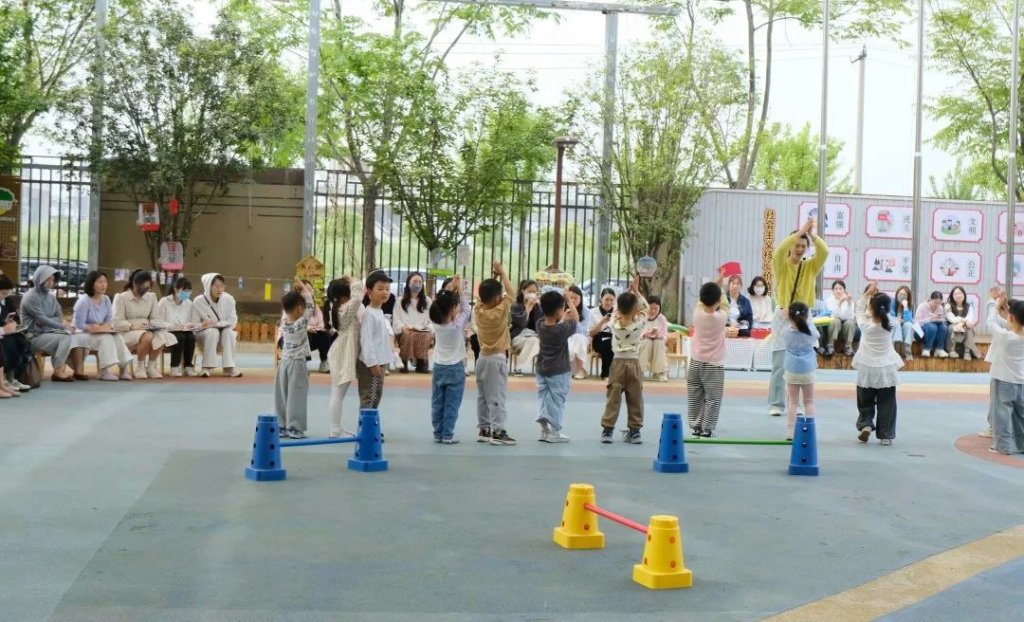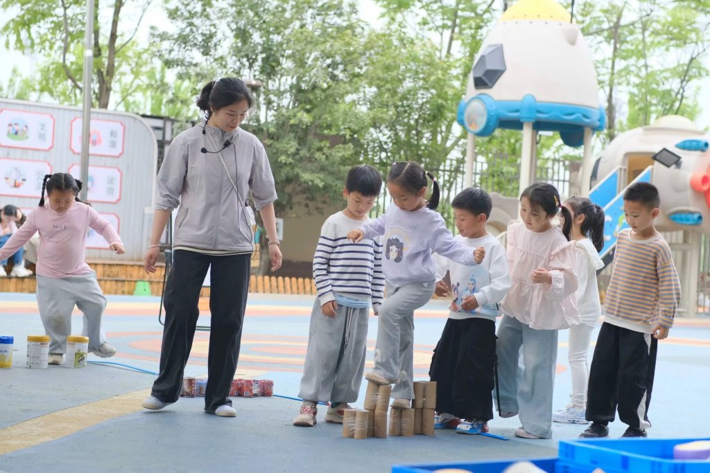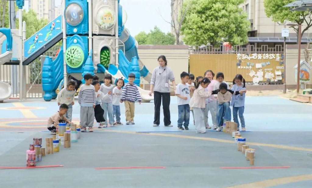 ~ 依托绘本中波波的冒险故事,教师设计”小老鼠波波参加运动会”主题游戏。幼儿通过”练习双脚交替在木桩上行走,保持身体平衡、敢于在高矮不同的木桩上走过,体验和木桩做游戏的快乐等环节,在沉浸式情境中锻炼身体协调性与问题解决能力。