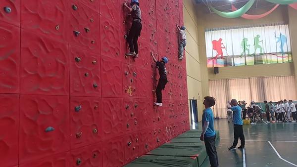 攀岩速降无疑是最具挑战性的项目之一,面对高高的岩壁,同学们在同伴的鼓励和教练的指导下,纷纷鼓起勇气,手脚并用,奋力向上攀爬。每向上一步,都需要克服身体的疲惫和心理的恐惧;每一次成功登顶,都迎来阵阵欢呼和掌声。而速降时,从高处飞速滑落的刺激,让同学们在挑战自我中收获了勇气和成长。