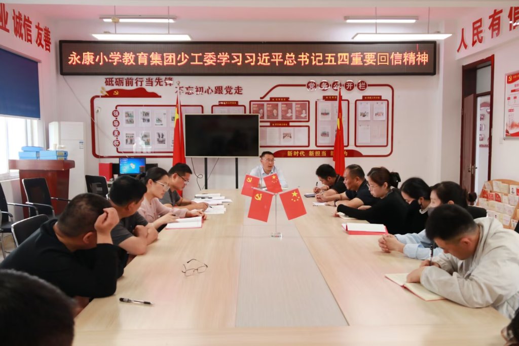 ~ 5月6日,定远县永康小学教育集团少工委召开了全体中队辅导员会议,学习贯彻习近平总书记给谢依特小学戍边支教西部计划志愿者重要回信精神。