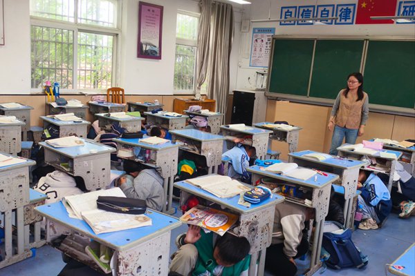 上午9时30分,随着一阵急促的警报声响起,演练正式开始。各班级教师迅速响应,第一时间组织学生进行应急避险。同学们迅速躲在课桌旁、墙角等安全位置,待“地震波”过去后,在老师的引导下,有序撤离到室外空旷地带。整个疏散过程中,各楼层、各楼梯口均有教师值守,负责维持秩序、引导疏散,保障学生安全。短短两分钟内,全体师生顺利集结至操场。随后,该校分管领导对本次演练进行了总结点评。