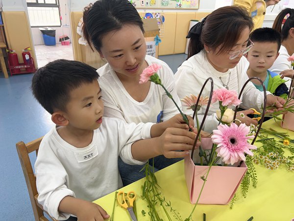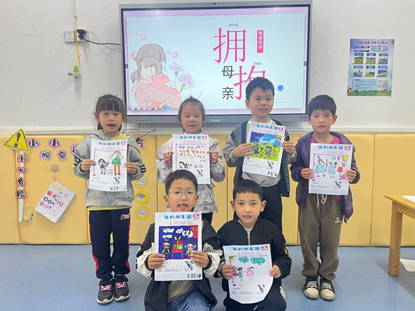 活动中,亲子插花环节让家长与孩子携手创作,花香中传递着感恩与祝福;孩子们绘制“我的朋友圈”,用画笔描绘与母亲的温馨瞬间;亲手绘制的画作更凝聚了对母亲的敬爱之情。活动在齐唱主题歌曲中达到高潮,全体合影定格美好回忆。