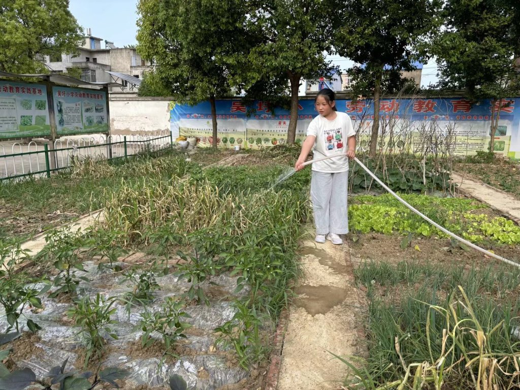 ~ 学校劳动教育实践基地里,同学们在老师指导下参与种植、浇水等劳动。亲手种下蔬菜花卉,了解植物生长过程,体会劳动的苦与乐。