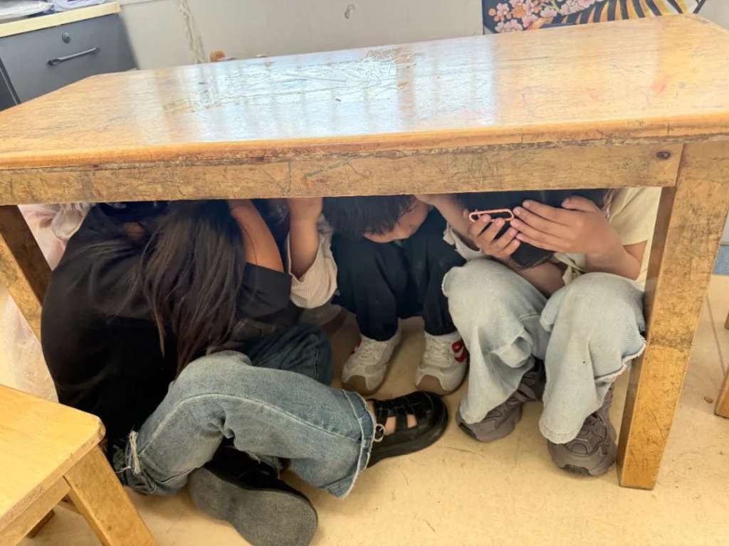 ~ 一声拉长的警报声响彻年家岗小学幼儿园,听到危险信号宝贝们立刻停止了活动,老师一边引导孩子们躲避危险,一边指导他们正确的躲藏姿势,双手抱头,将身子藏在桌子底下。当警报声再次响起时,在老师的指挥下,孩子们平稳有序地按指定路线迅速撤离危险地带,到达集合点。各班老师清点人数,不到3分钟全体师幼安全撤离。整个演练过程快速、有序、安全。