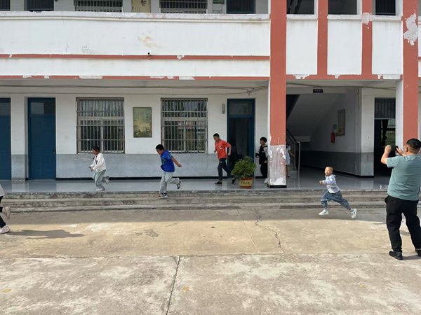 ~ 下午3时40分,演练正式开始,正在上课的学生立即在老师的指挥下,按照预定疏散路线快速有序撤离。教学楼各楼层、楼梯口均安排教师值守引导,确保疏散过程安全高效。仅用时不到一分钟的时间,全校师生全部安全撤离至操场指定区域。