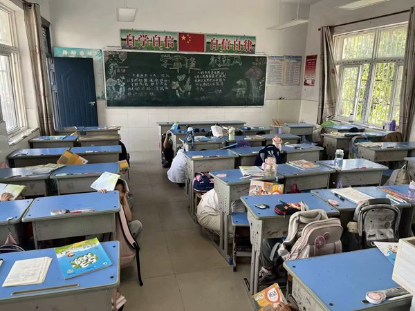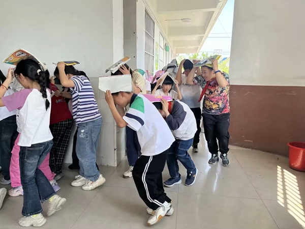 ~ “10、9、8……3、2、1!”随着最后一声数响,警报声骤然响起,划破校园的宁静。正在上课的师生们迅速按照预定方案行动起来。同学们立即钻到课桌底下,用书包、书本等护住头部,身体蜷缩,做好紧急避险。老师们则在教室里维持秩序,指导学生正确避险。第二次警报声响起,各班级老师迅速组织学生,按照既定的逃生路线,猫着腰、用手护住头部,快速而有序地向操场安全地带撤离。整个过程紧张有序,全校师生配合默契。