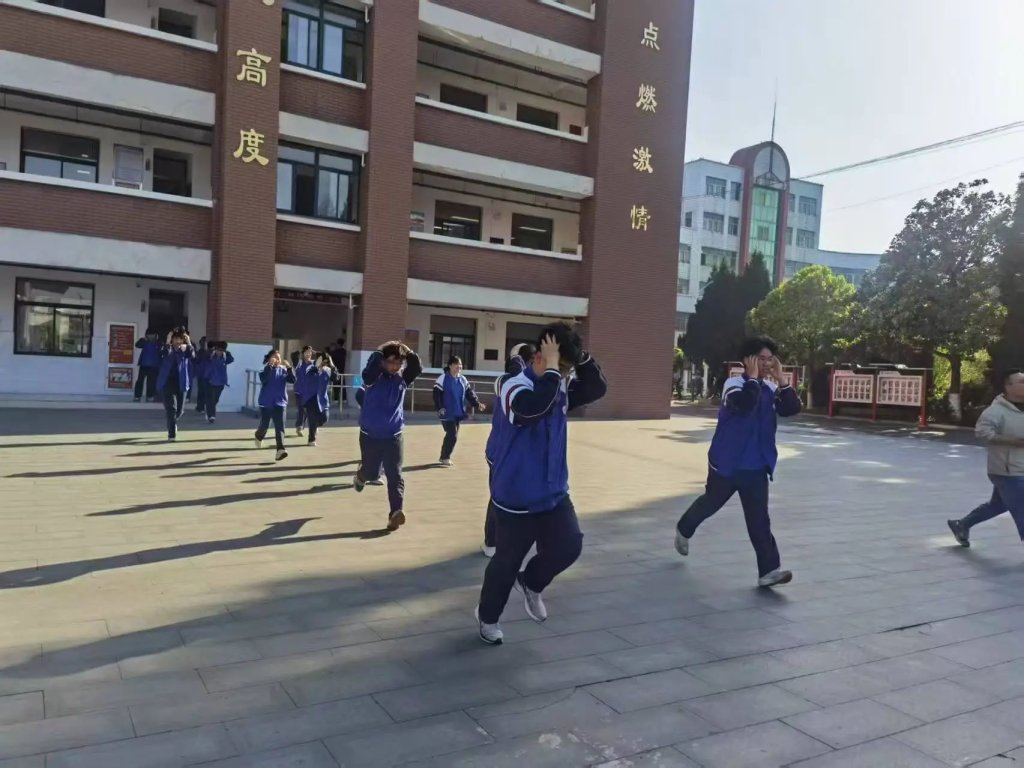 ~ 上午7点25分,随着警报声响起,各班老师迅速组织学生按照先躲避再撤离的预定方案有序避险,撤离过程中,学生按照要求双手抱头或用书本、书包等护住头部,快速、安全下楼;老师们密切关注撤离情况,确保队伍中没有推挤、踩踏等危险情况发生。各班到达指定位置后,班主任立即清点人数并向各年级部报告。整个演练过程紧张有序,有条不紊。