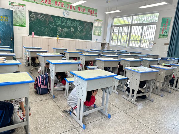 ~ 为了增强师生的防震安全意识,提高师生应急疏散避险能力,培养学生应急逃生自救技能,确保师生生命安全,定远县花园湖小学于2025年5月12日上午开展了防震演练活动。