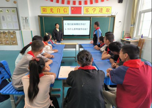 ~ 其五、劳动模范进课堂 教师通过视频让学生了解平凡的劳动者的奋斗故事,鼓励学生“只要肯努力,每个人都能创造价值”。