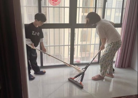 ~ 其七、亲子劳动暖人心 学校倡导家长与孩子共同完成一项家庭劳动任务,如拖地、整理房间或种植花草。孩子不仅主动分担家务,还骄傲地展示劳动成果,亲子关系在协作中更加融洽。