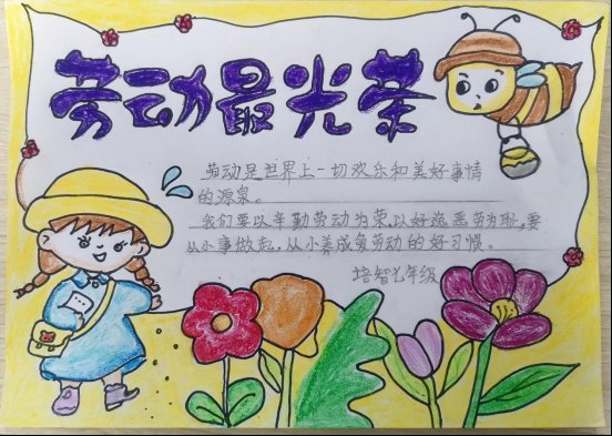 ~ 其三、描绘劳动之美 一幅幅色彩斑斓的手抄报展现了“劳动最光荣”的主题,有描绘校园保洁员辛勤工作的场景,有记录自己参与家庭劳动的瞬间。