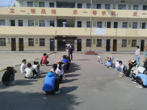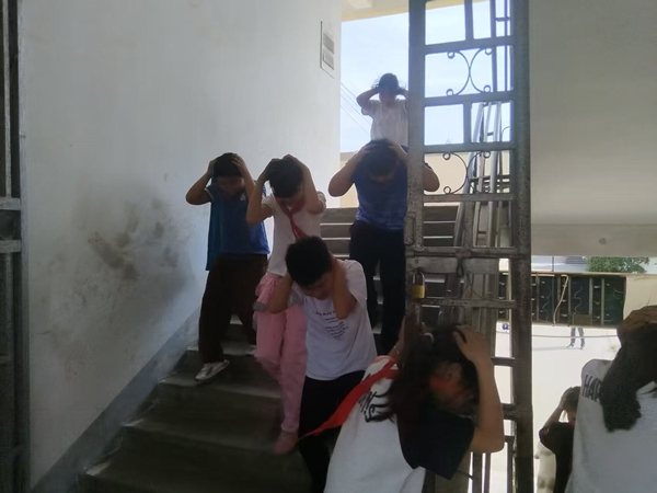 ~ 上午,各班通过图片、视频等形式开展主题班会普及防震知识。下午4时,在没有事先通知的情况下,地震警报声突然响起,演练开始。正上课的师生迅速抱头躲在桌下,随后弯腰护头,沿指定路线迅速有序地撤离至广场安全区域。与以往演练相比,此次学生们的表现有了明显的成长与进步。他们不仅动作更加迅速、规范,整个过程紧张有序,没有出现推挤、摔倒等情况,基本上实现了一楼各班学生10秒内、二楼学生20秒内离开班级到达安全区域的目标。