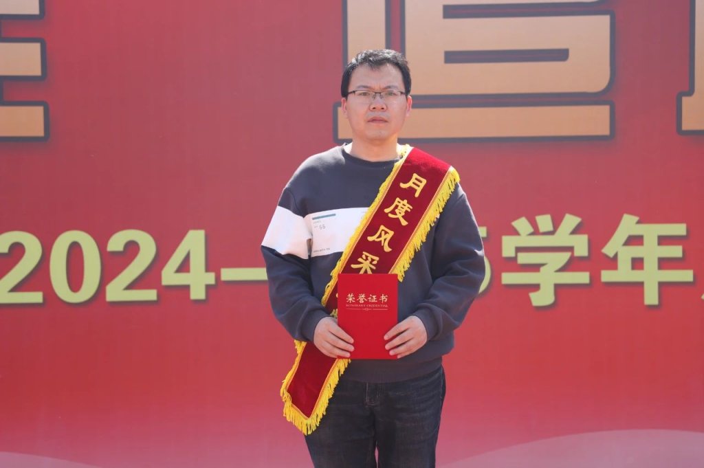 王浩老师以“体魄强健促学业精进”为育人理念,将体育精神融入班级管理。他以身作则,课间操陪跑、晚修谈心,以体育人的坚韧、班主任的细致,爱岗敬业,无私奉献,打造出学业与体魄并重的标杆班级,他不仅是操场上的奔跑者,更是学生成长路上的领跑者!