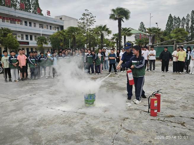 ~ 为切实增强师生消防安全意识,提升校园火灾应急处置能力,2025年5月14日上午,定远县消防大队走进大桥初级中学,开展了一场集知识宣讲、实操演练于一体的“沉浸式”消防安全主题教育活动,为校园消防安全工作注入强劲动力。