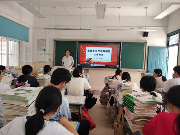 ~ 下午,该校道德与法治课老师深入各班开展“美好生活,民法典相伴”专题讲座,向同学们介绍民法典的编纂历程、重大意义和重点内容,依据民法典对社会热点问题进行解答,通过实例引导学生理解民法典内容原则和法治精神,并希望通过“小手拉大手”,帮助家长和亲友学会运用民法典维护自己合法权益、化解社会生活中的矛盾纠纷,期望形成全社会办事依法、遇事找法、解决问题用法、化解矛盾靠法的法治环境。