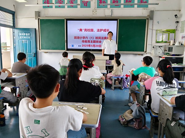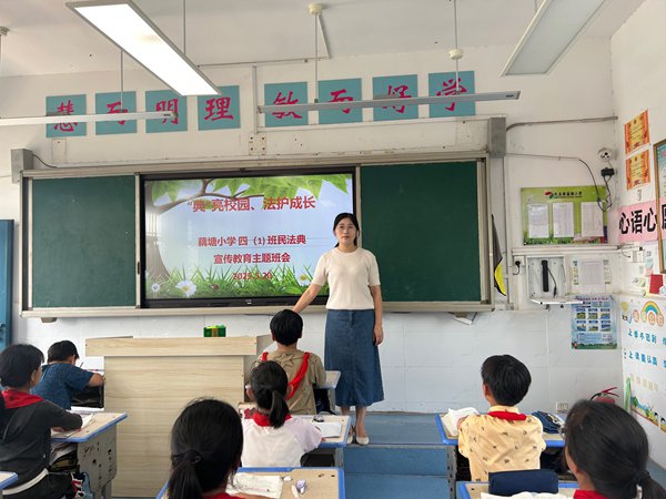 ~ 2025年5月是第五个“民法典宣传月”,为切实加强民法典的学习宣传教育,定远县藕塘小学积极响应“民法典宣传月”活动号召,围绕“‘典’亮校园、法护成长”主题,开展了一系列丰富多彩的法治教育活动,引导师生深刻认识民法典,营造了浓厚的校园法治氛围。