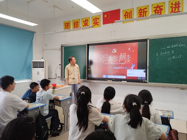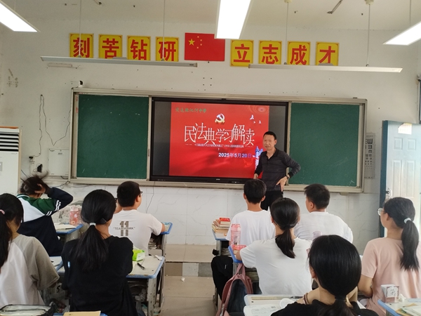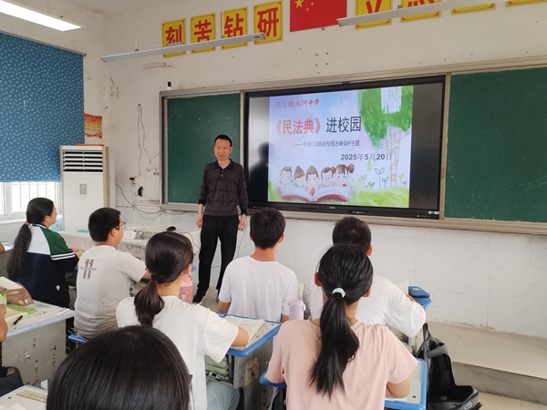 ~ 2025年5月是《中华人民共和国民法典》实施以来的第五个“民法典宣传月”。为深入有效地开展《中华人民共和国民法典》学习宣传活动,培养在校学生的法治观念,提升学法、知法、懂法、守法的法律意识,促进文明校园建设,近日,定远县池河中学各班级举行了“学习民法典知识”主题班会。