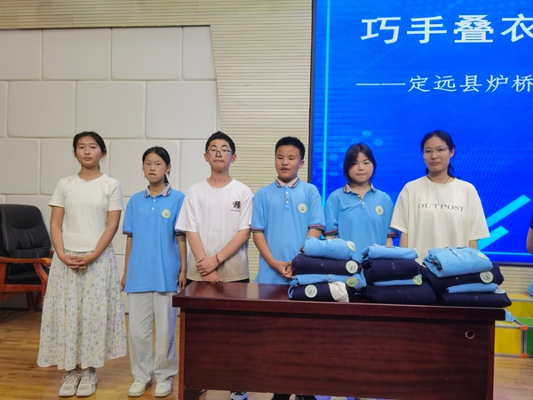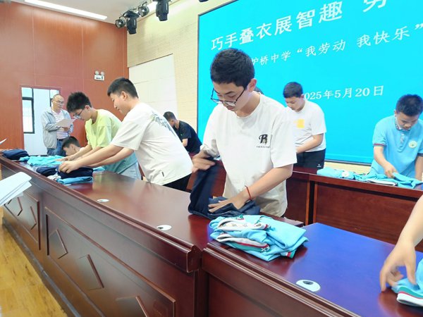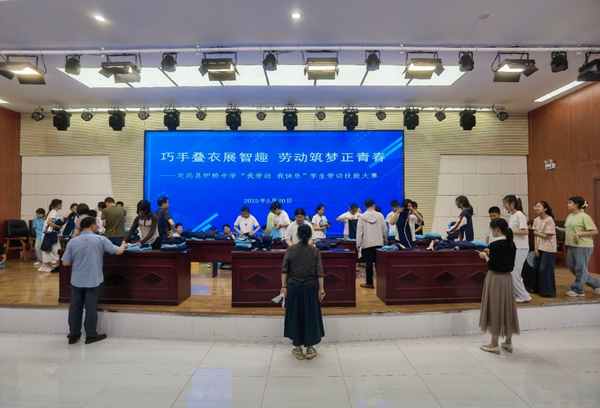 ~ 为培养学生的劳动意识与实践能力,促进学生全面发展,5月20日下午,定远县炉桥中学在学校报告厅成功举办七年级学生叠衣服劳动技能大赛。此次大赛将叠衣服这一生活技能与学校劳动教育课相结合,为七年级全体同学带来了一场别开生面的劳动教育体验。