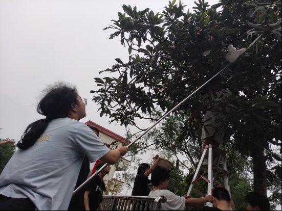 ~ 在采摘过程中,同学们互帮互助,展现出良好的团队协作精神。有的同学个子不够高,同伴们就主动搭把手;有的同学负责采摘,有的同学负责搬运,分工明确,配合默契。经过大家的共同努力,一筐筐饱满圆润的枇杷被采摘下来,金黄的果实不仅象征着丰收,更凝聚着同学们的辛勤劳动。