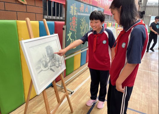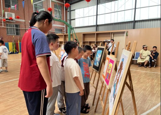 ~ 活动当天,学校室内操场展出了以“传统文化印记”为主题的书画作品。学生创作的国画、书法及非遗主题手绘作品吸引众多师生驻足欣赏。一幅幅水墨山水、楷书楹联,以及融入剪纸、泥塑元素的现代画作,既展现了传统艺术的精髓,也传递了学生对非遗文化的独特理解,体现了传统技艺与现代特殊教育理念的融合。