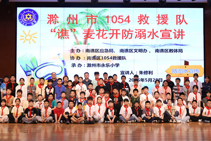 ~ 为进一步普及防溺水安全知识,提升师生的自救他救能力,增强安全意识,减少溺水悲剧发生,5月28日上午,滁州市永乐小学邀请南谯区1054救援队为该校师生带来了一场生动实用的“防溺呛水自救他救”培训讲座。