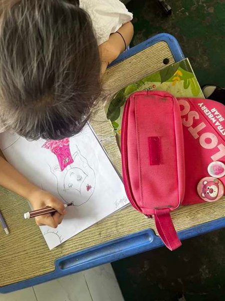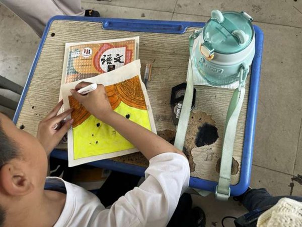 ~ 紧接着,三年级学生通过绘画的方式将近期内心的情绪具象化呈现。有的同学用凌乱的线条和浓重的色彩宣泄学习压力带来的烦躁;有的则用柔和的色调和温馨的画面描绘与家人相处的幸福瞬间。在真诚的交流中,大家学会了理解他人情绪,也掌握了通过艺术表达释放不良情绪的有效方法,现场充满了温暖与包容的氛围。