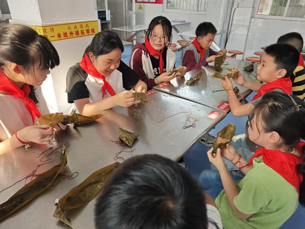 ~ 在学校少先队和留守儿童之家的组织下通过说端午习俗、讲屈原故事、吃粽子等,了解端午节的来历和文化内涵,不仅体会到我国传统节日的独特魅力,还懂得了延续两千多年的端午节所承载的中华民族厚重的家国情怀,激发了同学们的爱国情感。