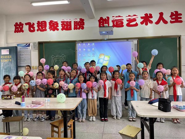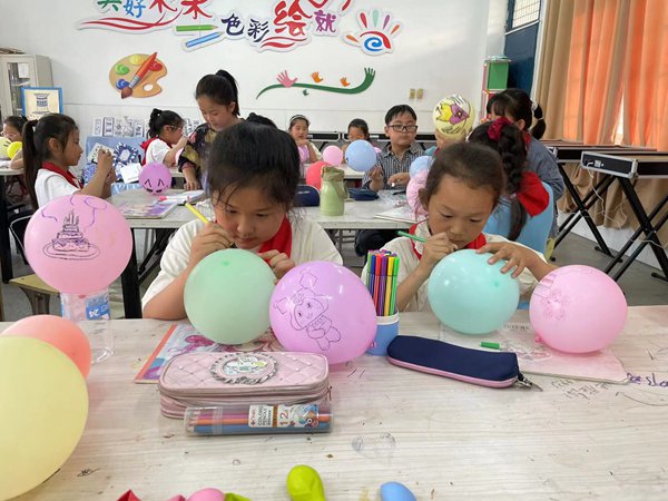 ~ 随后,各年级通过开展充满趣味与欢乐的释压游戏活动将心理健康主题教育活动推向了高潮。“快乐气球,传递健康”游戏中,学生们用气球共同绘制心愿,表达爱和传递爱。活动过程中,学生们相互配合、相互鼓励,欢笑声此起彼伏。体育减压活动同样精彩纷呈。学校组织学生开展了趣味运动,其中欢乐套大鹅、快乐数字加减法等项目深受学生喜爱。在运动场上,学生们尽情玩耍、跳跃,释放着活力与激情。体育活动不仅锻炼了学生的体魄,更让他们在挥洒汗水中释放了压力,增强了自信心和团队协作精神。有的班级还通过“快乐成长”主题绘画来进行心理健康教育。