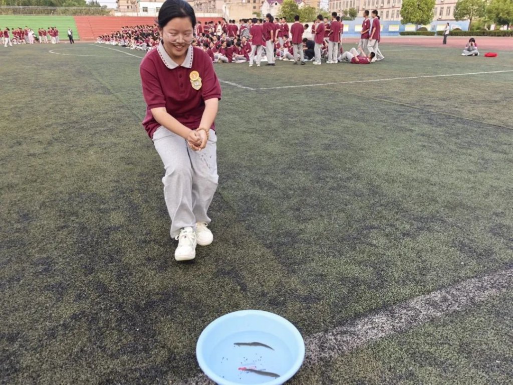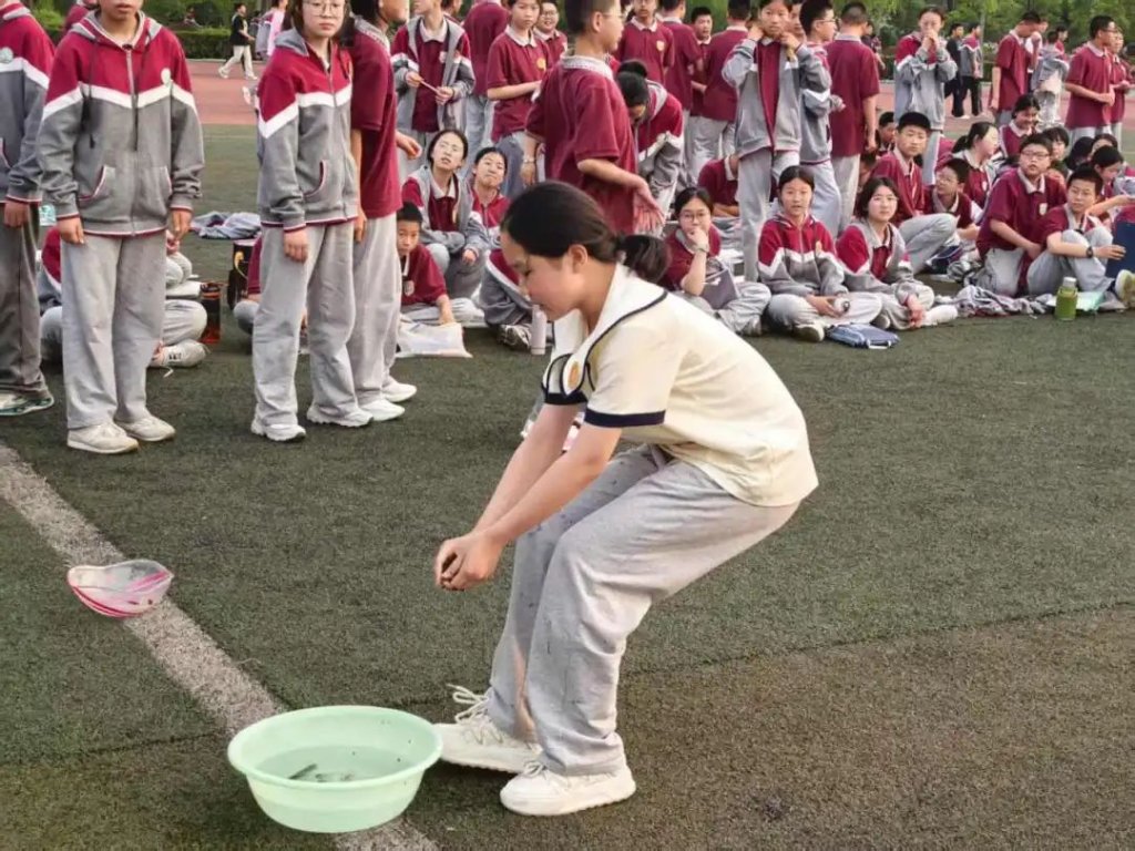 ~ 接着, 操场变身欢乐的”泥鳅乐园”,一场别开生面的”庆六一•捉泥鳅”趣味比赛在这里火热举行。七年级师生共同参与,活动现场,孩子们都非常兴奋,像一个个身手敏捷的小渔夫,灵活地穿梭在水池中,他们仔细搜索着水池里的泥鳅,或追逐、或拦截,全身心地投入到与泥鳅的角逐中,欢声笑语响彻了美丽的校园。 这次活动不仅让孩子们体验了传统游戏的乐趣,更培养了他们的观察力、动手能力和团队精神。