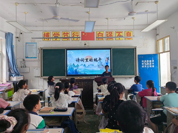 ~ 诗词班会话端午:童心共品古韵香 主题班会课上,各班围绕“诗词里的端午”开展多元活动。老师们以趣味动画解析端午习俗,学生找到与端午相关的诗词进行朗诵。从陆游“重五山村好,榴花忽已繁”的乡村端午盛景,到苏轼“彩线轻缠红玉臂,小符斜挂绿云鬟”的民俗风情,在诗句赏析中领略端午文化的丰富内涵。
