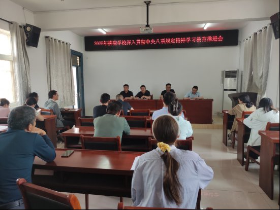 ~ 6月3日,定远县拂晓学校深入贯彻中央八项规定精神学习教育推进会在校会议室隆重举行。学校领导班子成员及全体教职工齐聚一堂,共同就深入贯彻中央八项规定精神进行深入交流与工作部署。