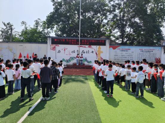 ~ 火红的队旗高高飘扬,指引我们前进的方向,鲜红的领巾系满理想,载着我们扬帆远航。6月4日,定远县青洛小学举行了一年级新队员分批入队仪式。