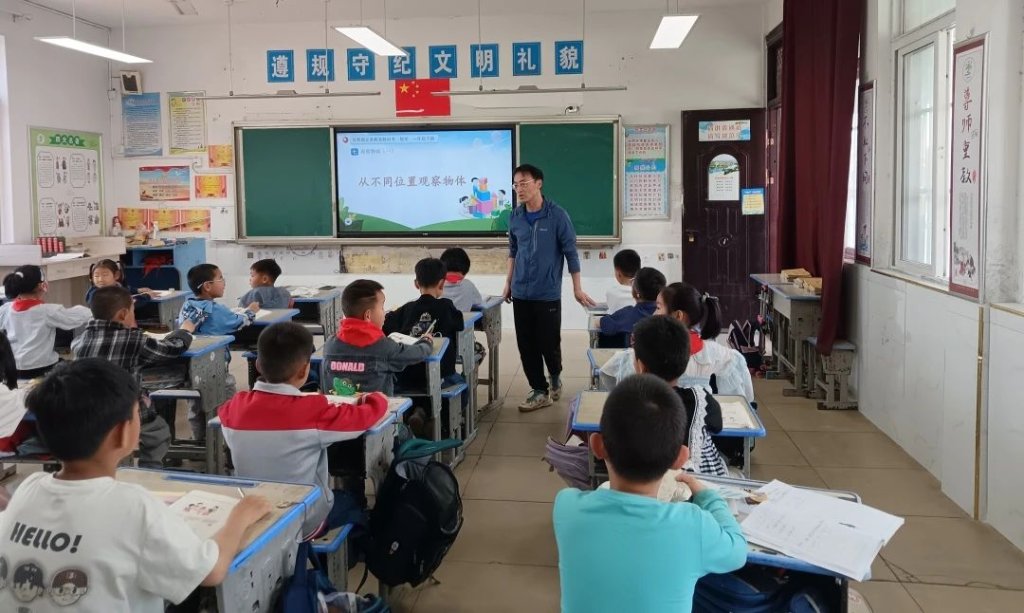 ~ 杨老师以“盲人摸象”故事导入,引发对观察角度的思考。学生分组从不同方位(前、后、左、右)观察实物模型(如熊猫玩偶),描述所见形状特征。通过交流分享、对比视图,直观体验“位置不同,所见可能不同”的空间观念。尝试简单画图或拼摆视图,初步建立多角度观察意识。