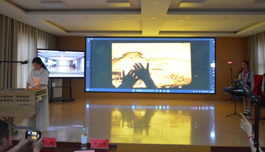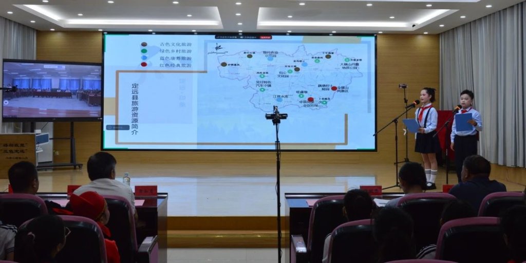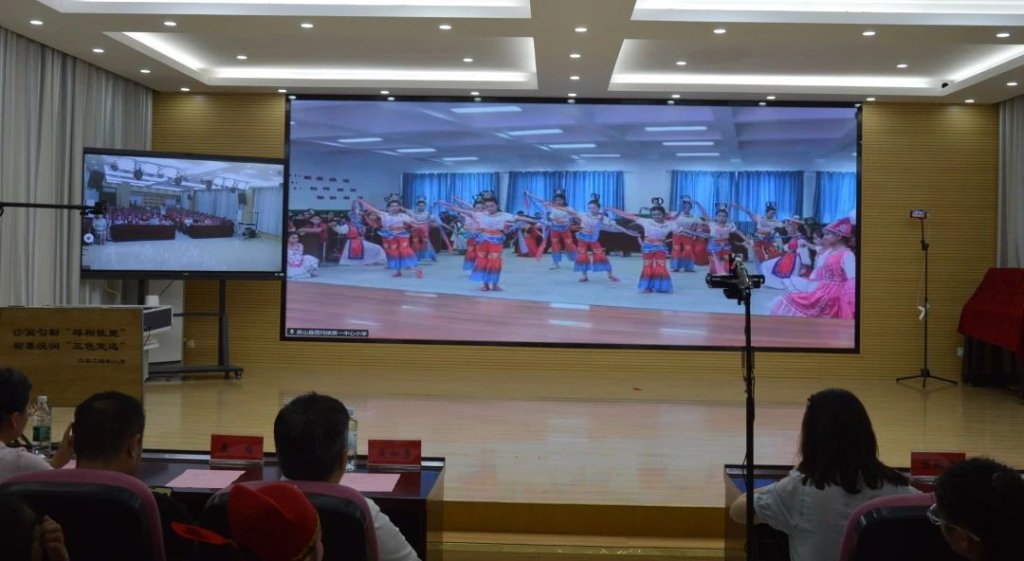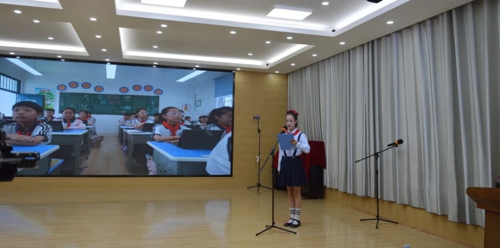 ~ 活动在庄严的国歌声中拉开帷幕,全体人员庄严肃立,高唱国歌,激昂的旋律为活动奠定了庄重而热烈的基调。定远县职工子弟小学五(1)中队少先队员金熙晨首先介绍了本校的基本情况,让皮山县的小伙伴们对定远县职工子弟小学有了初步认识。随后,皮山县的学生代表也分享了他们学校的特色与魅力,让定远的同学们对远方的校园有了更直观的认识。