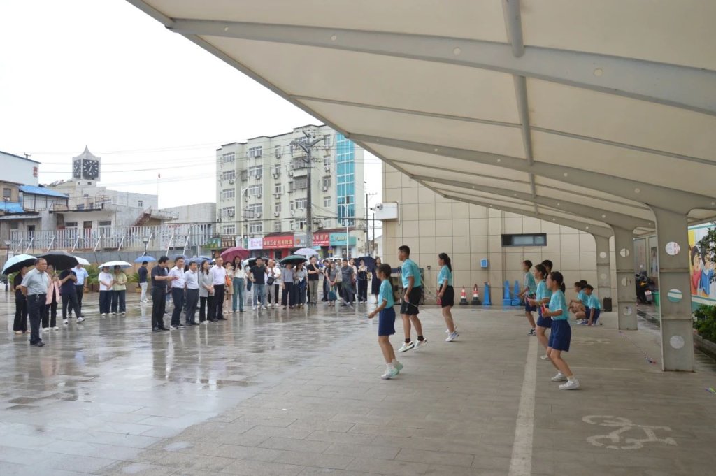 ~ 在学校党支部书记杨孝前,校长王坤等校领导的陪同下,观摩团一行首先来到北广场,跳绳队的同学们以精彩绝伦的表演迎接大家。他们动作整齐划一,跳绳飞速舞动,展现出高超的技巧和坚韧的团队精神,赢得了现场阵阵喝彩。这些小运动员们平日里刻苦训练,用汗水诠释着对运动的热爱,此刻的精彩表现正是他们努力的最好见证。